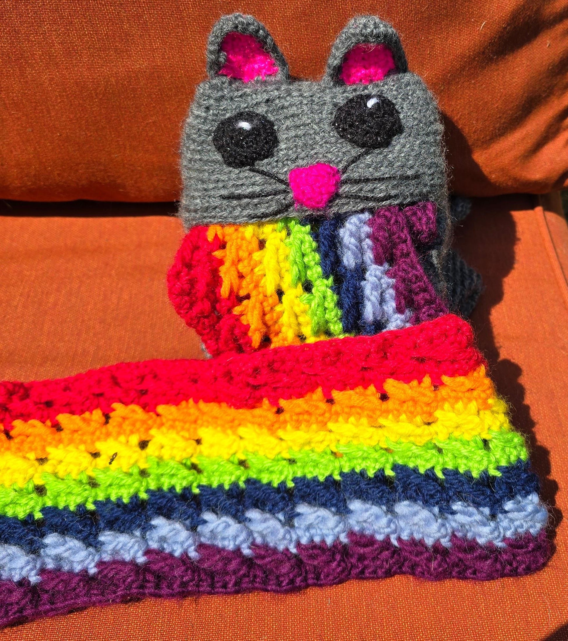 Brighten the darkest, coldest days with this adorably fun scarf! Made with 100% Superwash merino wool in bright colors, this friendly and warm scarf will be a hit everywhere you go! Everyone will want to know where you found this unique and useful item. Stay warm even when wet due to the properties of the wool. Whether you‘re having fun in the snow, working in dreary weather, or just bustling about in the cold, your new little buddy will help you stay warm.