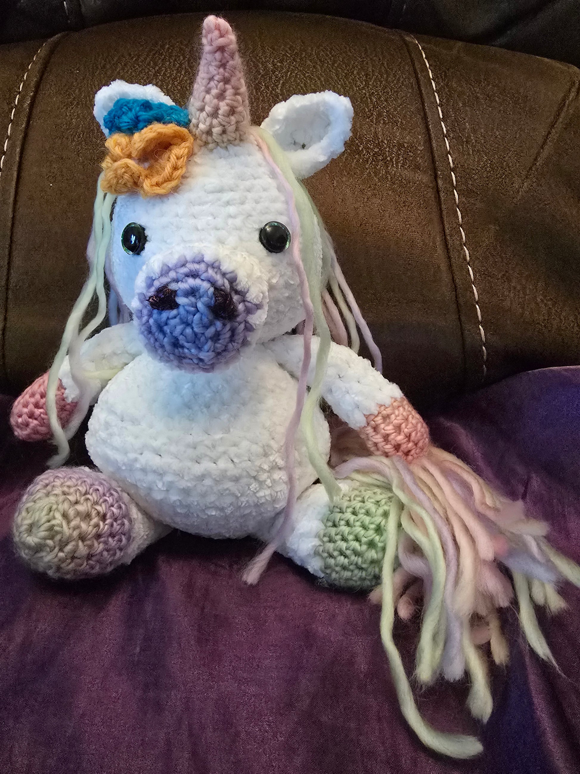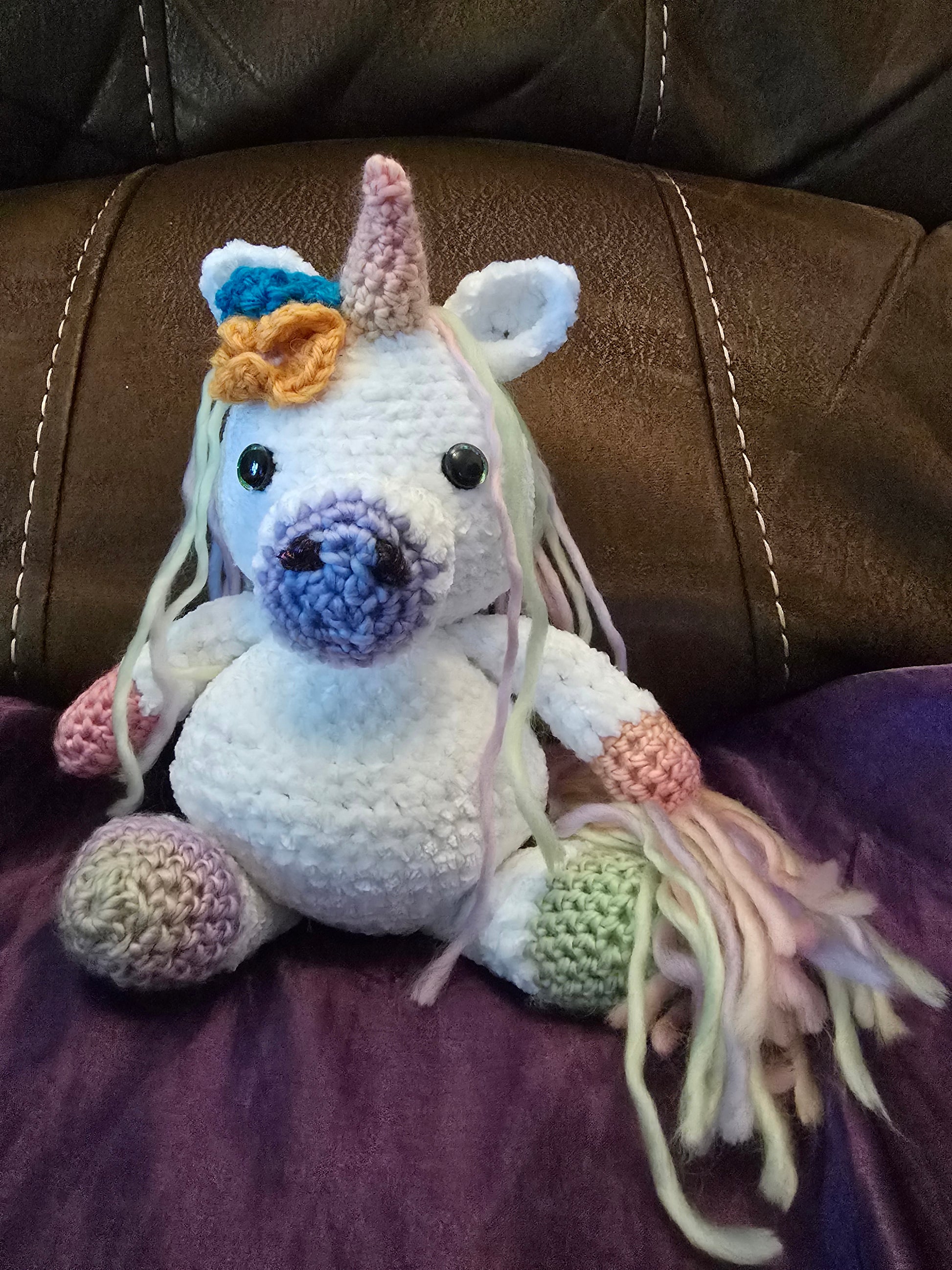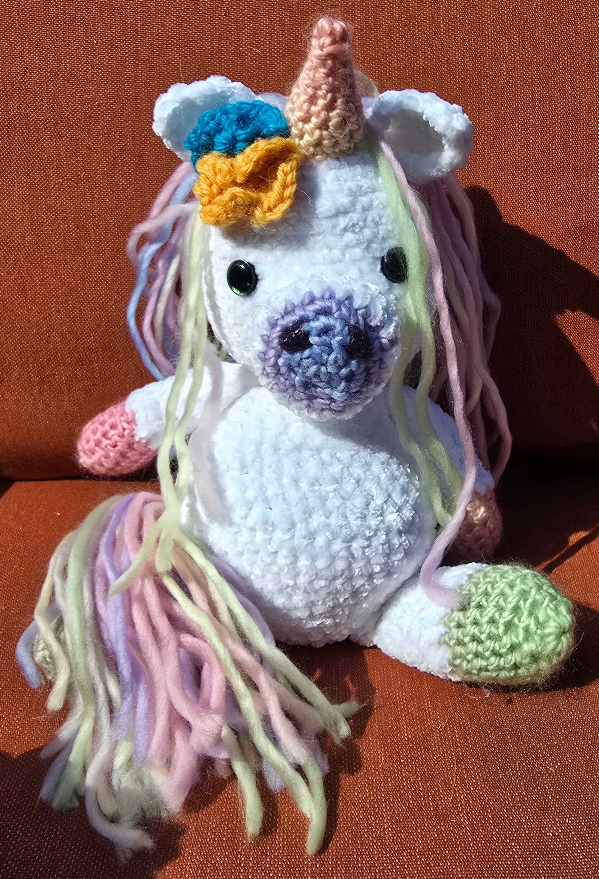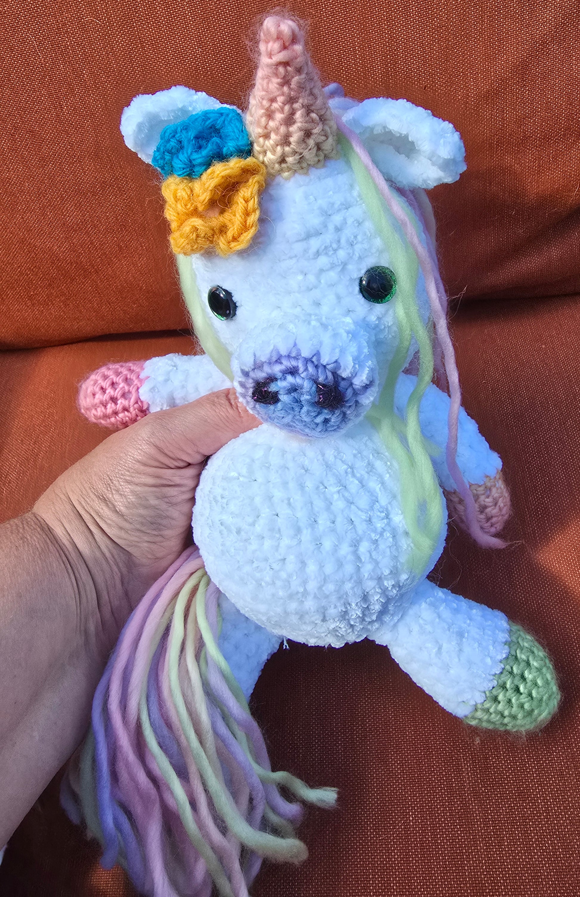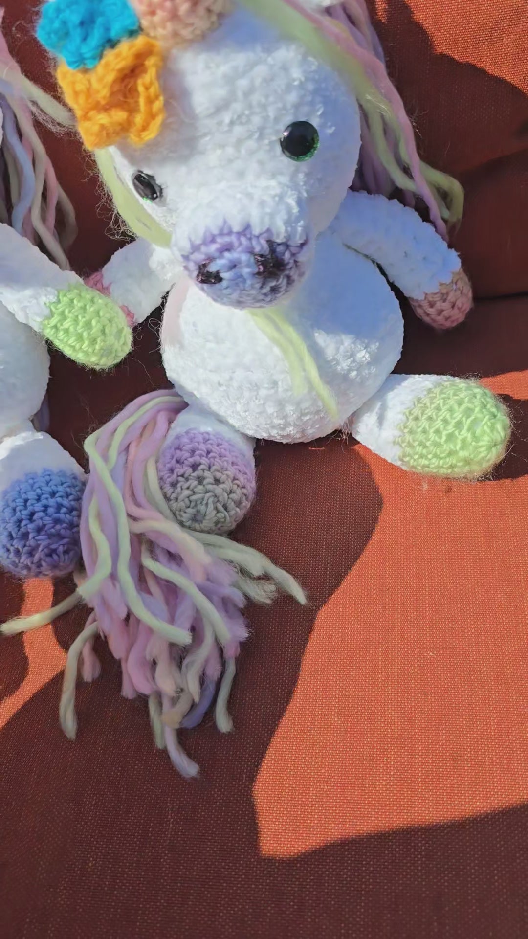 Soft Pastel Rainbow Amigarumi Stuffed Unicorn (Pink horn)